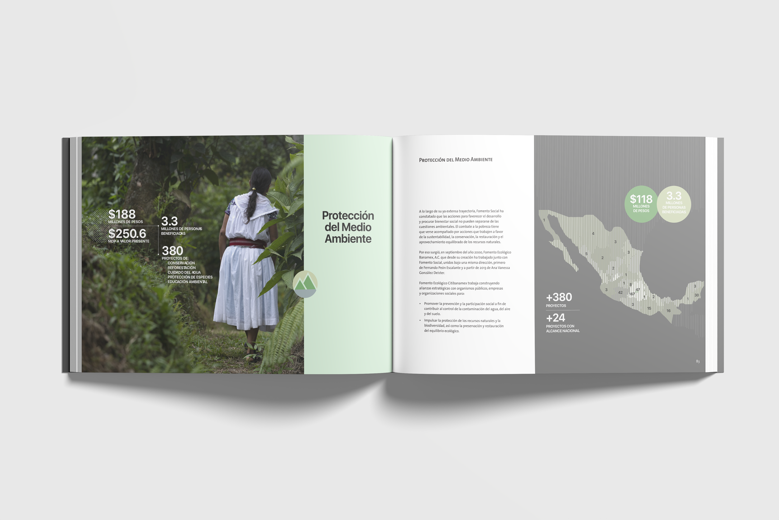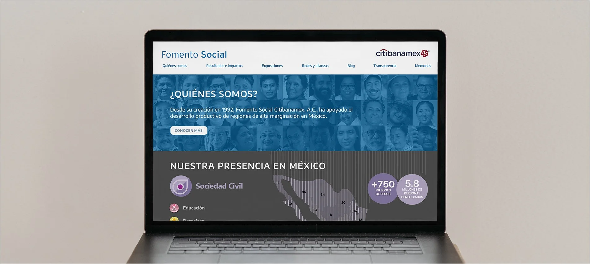 Furniture design for exhibition, edition of digital book and website design for Fomento Social Citibanamex 30 year aniversary.